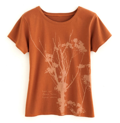 Our 100% organic cotton tees not only inspire, they also spark positive change in communities around the globe. Flattering fit. Low eco-impact dyes. Women?s sizes S-M-L. Slim fit; order next size up for more relaxed fit. A Gaiam exclusive. India.